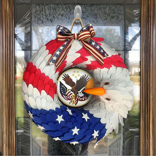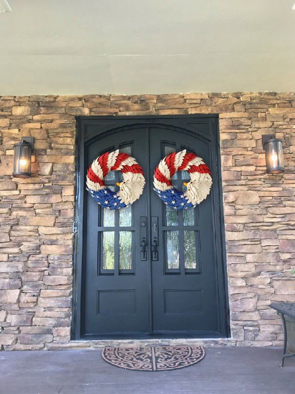 Show your love of your country right at your doorstep with the American Eagle Patriot Wreath. Handmade with pride and patriotism, it creatively combines the American flag and American Eagle with vibrant colors of red, white, and blue.