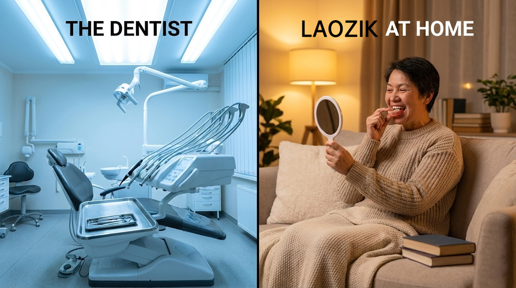 Skip the expensive bills, endless appointments, and painful recovery. LAOZIK™ gives you a natural-looking smile you can fit yourself, right at home, in minutes.